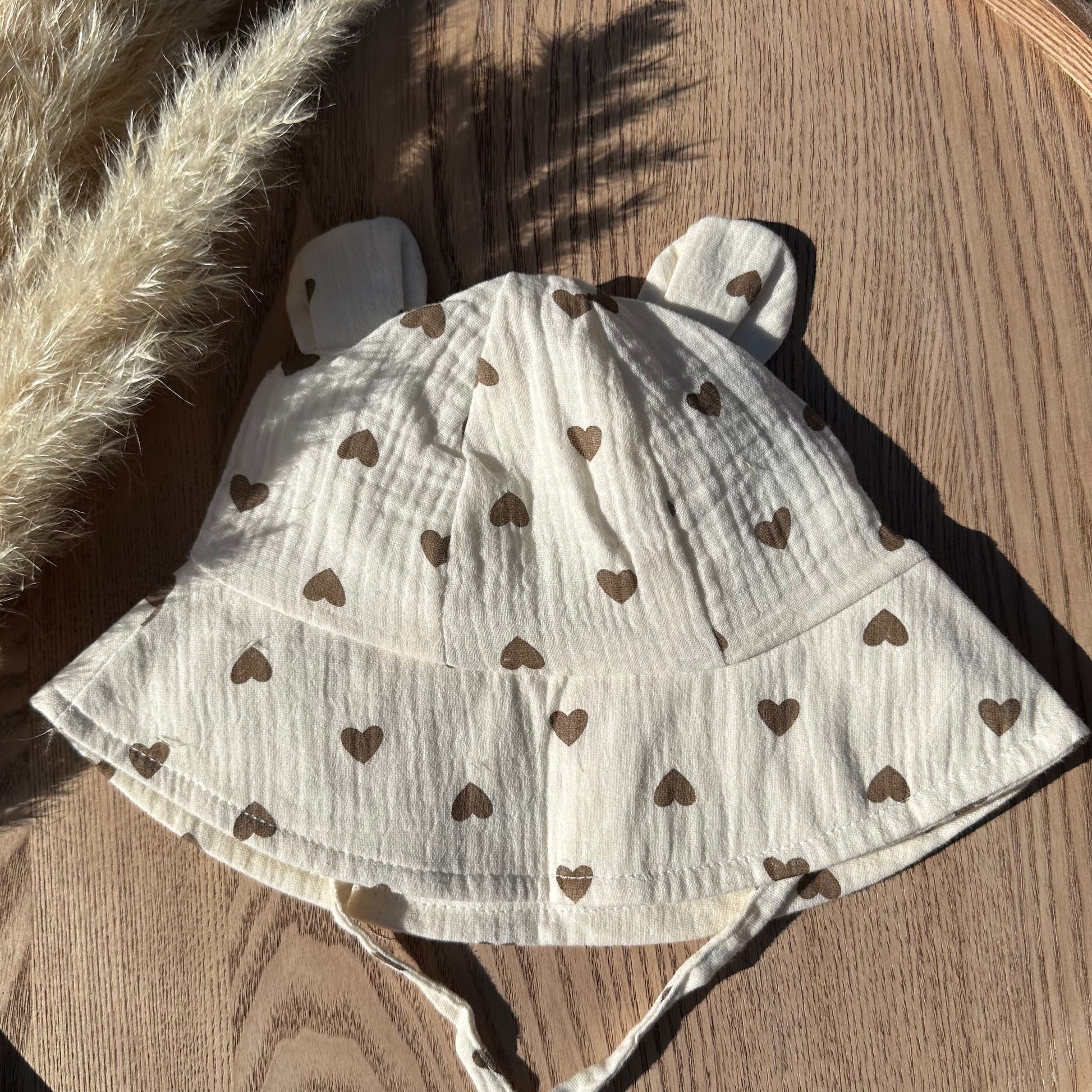 Een schattig en zacht zomerhoedje met bandje onder de huid. Verkoelend door de zachte hydrofiele stof.
