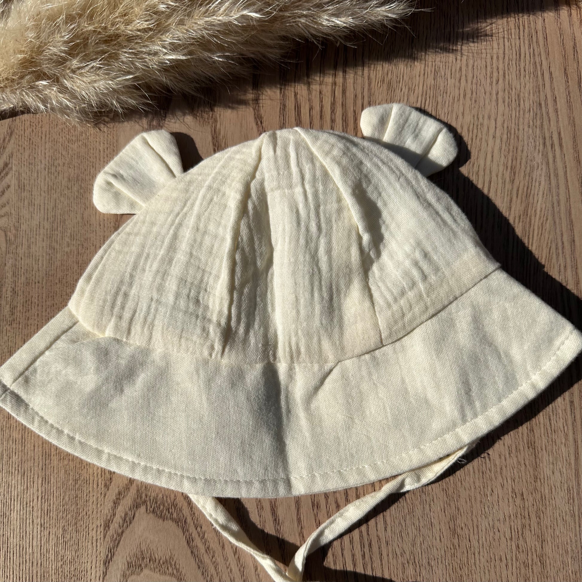 Een schattig en zacht zomerhoedje met bandje onder de huid. Verkoelend door de zachte hydrofiele stof.